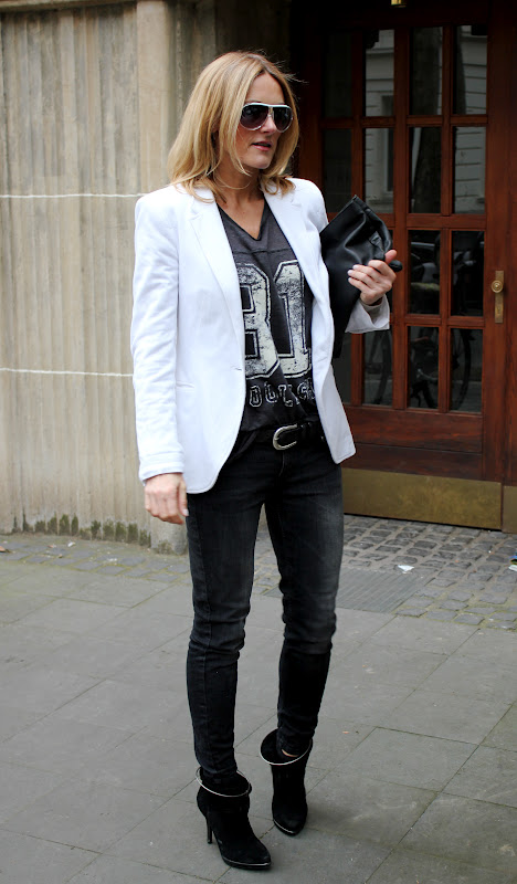 Ja! Sehr cool dein Outfit. Ich warte auch gerade, wenn der Postbote meinem Nummer T-shirt anbringt. Habe einen bestellt. Und heute früh habe mir gedacht ein Weisses Blazer zu kaufen. Wir haben so ein ähnlichen Geschmack Doro!